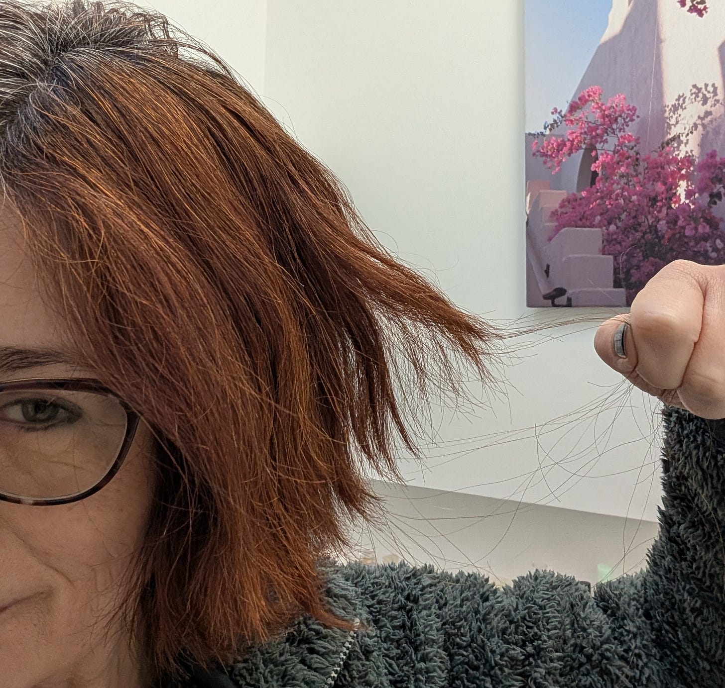 Alas, my hair started shedding quite a lot last night. I’d hoped that because I’d almost made it to day 21, that could be a good sign (often loss starts around day 14). But I do have a lot of hair, so keep your fingers crossed some will be hanging on in there…
