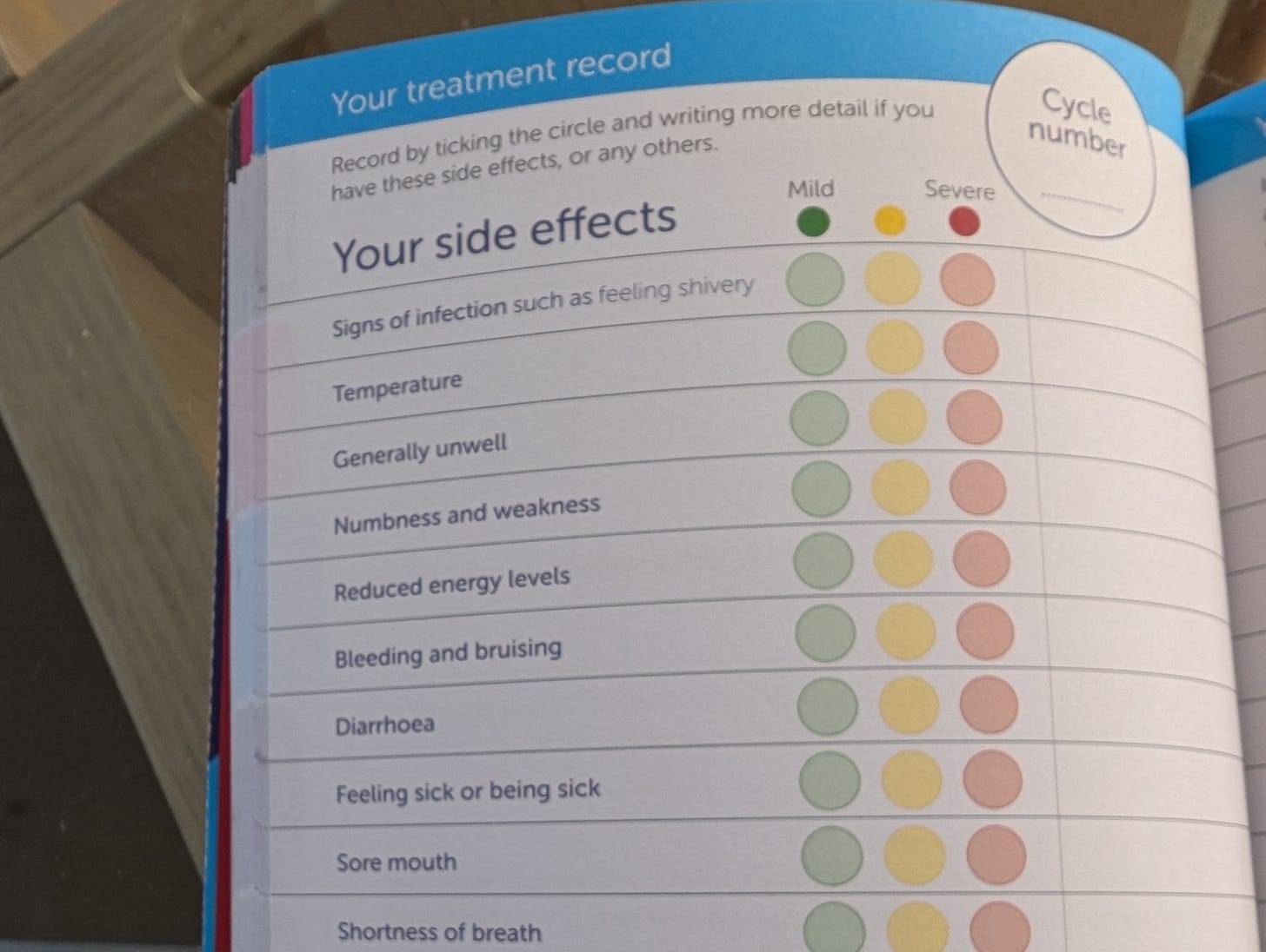 Patients need to give informed consent to chemo - unfortunately that involves having countless potential side-effects read out to you, before getting a form with the whole lot highlighted, to sign.